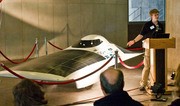 Michael P. Roberts ’11, captain of the MIT Solar Electric Vehicle Team, unveils the team’s latest solar car, named Eleanor, on Friday. The car is expected to compete in the World Solar Challenge, a 3000 kilometer race through the Australian Outback, in October. Eleanor can reach 90 mph and drive from Boston to New York without recharging.