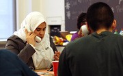 Hana I. Khalil ‘13 talks to a prospective member of the Class of 2014 on the phone during the admitted students telethon held on Thursday in the Bush Room.