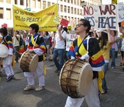 Korean drummers lead the march at an anti-war protest in Washington D.C. on March 20. The protest against the war in Iraq and Afghanistan was organized by the Act Now to Stop War and Racism coalition and Party for Socialism and Liberation).