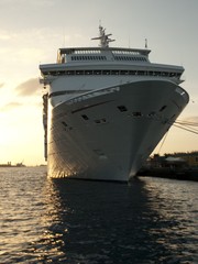 The cruise ship Carnival-Fascination is docked at Nassau, The Bahamas on the evening of March 22.