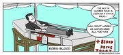 For Campus Preview Weekend 2010, hackers installed a high-class lounge (complete with pool table, sleeping cat, whiskey, and hack plans) upside down on the Media Lab Arch on Thursday morning.