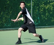 Kevin Pang ’11 hits a forehand during the men’s tennis match on Saturday. MIT won 8-1 over Springfield College.
