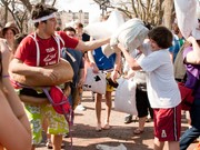 On Saturday, Boston participated in the Second Annual International Pillow Fight Day along with over 150 other cities around the world. Organized by Banditos Misteriosos, the event attracted over 1,500 people with pillows to Cambridge Commons to engage in glorious battle with their fluffily armed brethren.