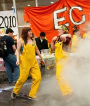 Maja Wiehrowska ’13 (left) and Laura Royden ’13 (right) dance in liquid nitrogen during the CPW Festival on Thursday. The liquid nitrogen ice cream, provided by East Campus, is an icon of MIT student culture.