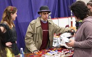 Giuseppe Zingales, a prospective freshman, plays Jenga on Thursday at McCormick.