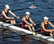 The varsity men’s lightweight crew passes the halfway point in Saturday’s 2K race against Dartmouth and Penn. The Engineers lost ground in the second 1,000 meters, finishing in third place.