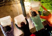 Residents of Senior House drop bouncy balls on prefrosh during the dorm’s 2010 Bouncy Ball Drop for Campus Preview Weekend, on Friday.