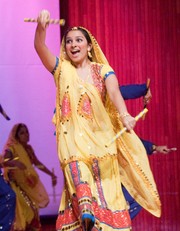 Members of the MIT Raas team dons traditional Rajasthani attire and regale the crowd with their energetic performance at Rishtey, the South Asian American Students Club’s culture show on Friday.