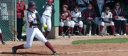 Keri A. Dixon ’11 connects with the ball during the softball game against Worcester Polytechnic Institute on Sunday. The Engineers won in the eighth inning of the game. (See story, page 20)