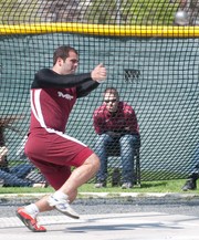 Adam Mustafa ’11 competes in the men’s hammer throw during the track and field meet on Saturday. MIT defeated Bates College and Colby College to place first in the meet.