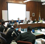 Union members from MIT Facilities, Police, and the Lincoln Laboratory, as well as members of the Student Union, gather in 1-190 on Friday to discuss the ongoing budget crisis at the Institute.