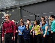 Jacob T. Bredthauer ’11 of the MIT Cross Products closes out the Break it Down Boston concert last Saturday night. Ten Christian acapella groups from New England schools performed at the event.