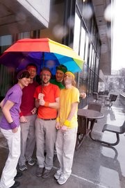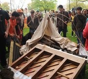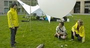 Jeffrey Y. Warren G, Nathan Cook, and John P. Murphy ’10 prepare to launch a helium balloon from McDermott Court on Tuesday as part of Microdot, a temporary autonomous nation bounded by the circular lawn. The balloon was used to take photos and create a map of Microdot.