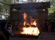 Left: Beef is cooked over the pit at Steer Roast on Friday. The lighting of the pit (by tradition with a flaming ball of toilet paper) marks the beginning of Steer Roast, Senior House’s annual weekend long party with several hundred pounds of meat, music, and mud wrestling.