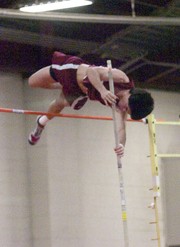 Ian Fischer ’12 pole vaults in the men’s track and field meet against Williams College and Coast Guard on Saturday. The Engineers won with 192.5 points to Williams’s 136.5 and Coast Guard’s 47.