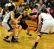 Lauren S. Burton ’13 squares off against Wellesley’s defense in the women’s basketball game on Saturday. The Engineers lost a close game after a second-half surge from the Wellesley Blue.