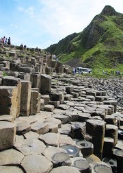 Hexagonal volcanic rocks form the Giant’s Causeway in County Antrim, Northern Ireland.