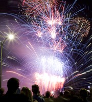 To enjoy the Boston Pops’ July 4th concert and the fireworks, thousands of people gathered on the Cambridge side of the Charles River across from the Esplanade