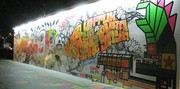 Three Indonesian street artists, Popo, Bujangan Urban and Rharharha, were brought in from Jakarta to create billboards for the 2010 “Night Festival” in Singapore. In addition to the traditional spray paint, they used multicolored duct tape to create strong lines and expand into the surrounding area.