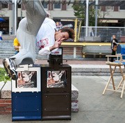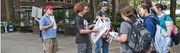 Ben Thompson ’13 (left) and another protester explain why they are protesting Pfc. Bradley Manning’s imprisonment and impending court marshal to a group of freshmen. Thompson and about 15 others were demonstrating outside of 77 Mass Ave from about noon to 5 p.m. on Sunday. Manning has been imprisoned since May on charges that he leaked classified government information to the website Wikileaks.