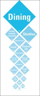 Most common student concerns for the UA. Square area corresponds to student interest. Numbers refer to quantity of student references to the issue in the survey results