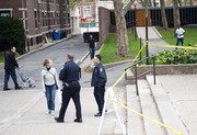 Police respond to the non-fatal stabbing of an Anna’s Taqueria employee in front of the Stratton Student Center on Wednesday afternoon. Anyone with information is requested to contact the Cambridge Police at 617-349-3300 or the MIT Police at 617-253-1212.