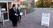 Voters leave Kresge Auditorium on Tuesday evening after casting their votes in the midterm elections. Kresge was a Cambridge polling place for Precincts 2 and 3 in Ward 2.