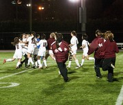 The women’s soccer team celebrates after defeating Wellesley College 3-1 during Tuesday’s NEWMAC quarterfinals game. The Engineers won 3-1 in a penalty shootout.