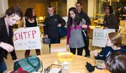 Students protest the new dining plan next fall by eating food in Baker Dining yesterday evening that they had prepared themselves.