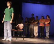 Stephen Giandomenico ’11 is thrust to the front of the stage during Dramashop’s production of Too Much Light Makes the Baby Go Blind. The show features 30 short two minute play, appearing today at 8 p.m. and tomorrow at 10 p.m. in Kresge Little Theater. Admission is $1 times the number of the roll of a die.