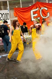Maja Wiehrowska ’13 (left) and Laura Royden ’13 (right) dance in liquid nitrogen during the CPW Festival on April 8. The liquid nitrogen ice cream, provided by East Campus, is an icon of MIT student culture.
