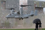 A V-22 Osprey tilt-rotor aircraft departs Briggs Field, May 3.