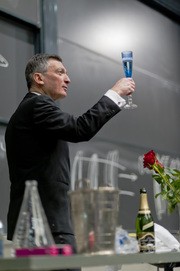 Professor Donald Sadoway toasts to his last day of 3.091, Dec. 8.