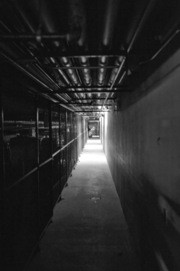 Dark hallways like this one shed new light on the phrase “light at the end of the tunnel.” This particular hallway located in the basement of Building 10 is noteworthy for this effect because of the relatively low height of its ceiling, small effective width from the presence of storage cages, and bright lights at its far end. The Infinite Corridor is occasionally closed for floor waxing at night; a way to get across campus at such times without leaving the warmth of MIT’s indoors is to go down one floor and use the basement.