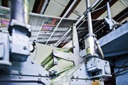 Papers are printed on continuous rolls of newsprint, which are later cut and folded in order.