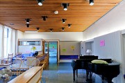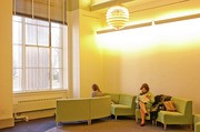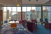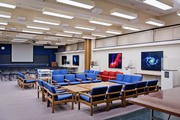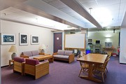 The Concourse Lounge (16-128), open only to Concourse students, boats a kitchen and seminar room.