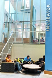 The Dreyfoos Lounge on the first floor of the Stata Center boasts group study areas.