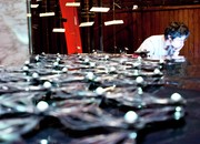 The final preparations are made to aFloat, an interactive installation in the MIT Chapel that simulated ripples in a pool of flickering lights.