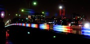 LightBridge lights up the Harvard Bridge on the evening of May 7. In this interactive display, participants were able to design their own light effects online and see them displayed during FAST Light.