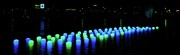 The colorful, plastic bubbles of Light Drift glow vivid blue and green in the dark. Light Drift was installed along the Charles River for the MIT150 FAST Light festival last weekend.