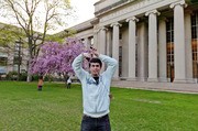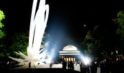 Inflatable stars soar above Killian Court during FAST Light on May 7. The sculptures were designed by Otto Piene, Director Emeritus of MIT’s Center for Advanced Visual Studies.
