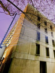 String Tunnel, located next to the Building 18 bridge, was installed by Yuna Kim G, Kelly E. Shaw G, and Travis A. Williams G for the MIT150 FAST Arts Festival. String Tunnel directs visitors to the Infinite Corridor.