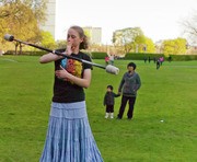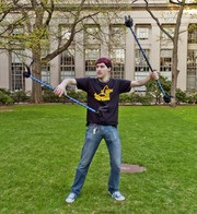 Nathan S. Lachenmyer ’10 spins two staves. He has been spinning for five years.