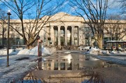 Even though we’re getting wet feet from stepping in the melted snow puddles, these puddles can be quite beautiful. Here’s a view of Lobby 7 and its reflection in a large clear puddle in front of the Student Center.