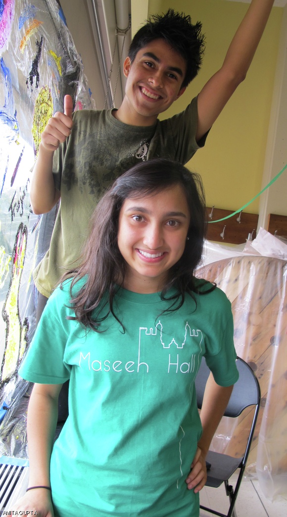 Amita Gupta Freshmen Arts Program dancers Mitali Kini ’15 and Francisco X. Peña ’15 (top) stand by their artwork painted on the windows of the Student Center.