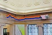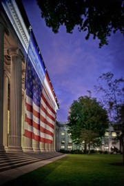 On Sunday, members of the MIT community reflected on the 10th anniversary of 9/11. Hackers installed lights on the Green Building and hung a flag, shot here in high dynamic range, on the pillars of Building 10. The MIT Chapel’s bells rang at 8:46 a.m. and 9:03 a.m., marking the times that planes struck the World Trade Center’s twin towers in 2001.