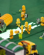 This Virginia Brickfair exhibit shows a radioactive spill with LEGOmen in HazMat suits attempting containment.