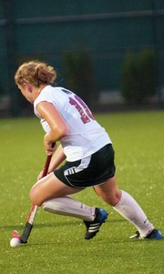 Erin B. Kenney ’14 catches the ball in the women’s field hockey game this Wednesday. MIT won 4 to 1 against Gordon College after Molly K. Duffy ’14 scored twice in the first five minutes. The Engineers dominated the game, rarely letting the opposing team get close to the net, losing only one point in the last ten minutes.