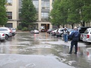A water pipe broke under the Main Lot, between Buildings 3 and 5, shortly before 3:30 p.m. on Oct. 26. Water pressure cracked and lifted the asphalt in the middle of the parking lot, and overwhelmed the drains near the driveway under the Infinite Corridor in building 7. A pipe in the same lot burst in August, 2010, though that flooding was more substantial and took longer to subside. The water subsided about two hours after the initial flooding.