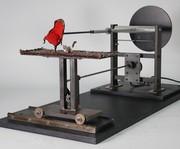 Arthur Ganson’s “Margot’s Other Cat” adds a touch of humor to Gestural Engineering, on view at the MIT Museum.